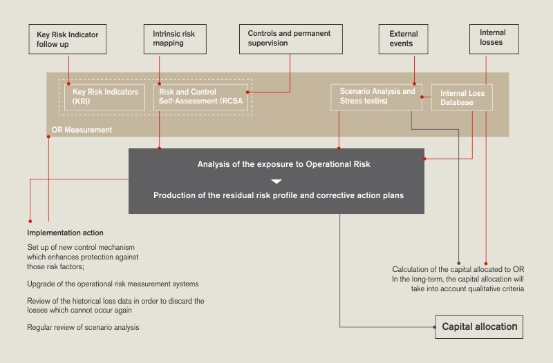 Internal loss data has been compiled throughout the Bank since 2010, enabling operational staff to define and implement the appropriate corrective actions (changes to activities or processes, strengthening of controls etc.):