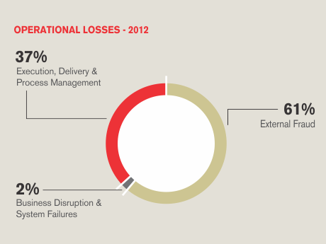 The Bank’s classification of operational losses in seven Basel loss event categories is the cornerstone of its risk modelling, ensuring consistency throughout the system and enabling analysis across